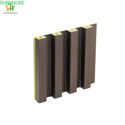 Le processus de fabrication par co-extrusion produit ce panneau en deux couches simultanées : un noyau composite structurel en HDPE et farine de bois assure la rigidité et la stabilité dimensionnelle, tandis qu'une couche extérieure formulée séparément — appliquée lors du même passage d'extrusion — assure la finition de surface. Cette couche de revêtement contient une concentration plus élevée de pigments de couleur et d'additifs tensioactifs que le noyau, produisant une face plus dense et plus résistante aux rayures que les panneaux WPC à extrusion simple standard. La liaison entre le noyau et le revêtement est formée pendant l'extrusion au niveau moléculaire, éliminant le risque de délaminage associé aux panneaux à extrusion simple filmés ou laqués.